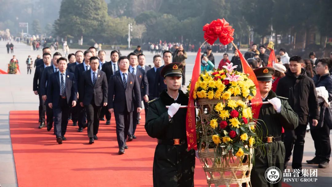 敬先辈——品誉集团高管一行,怀揣崇敬之心,向毛泽东铜像敬献花篮。