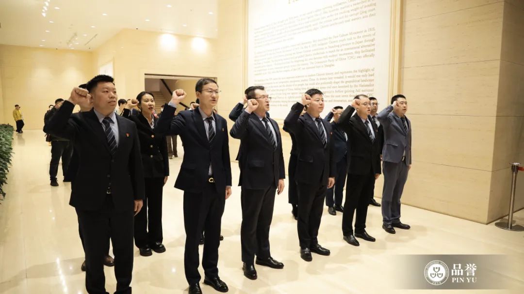 活动尾声,在汤董事长带领下,全体党员在一大会址宣誓厅举行了庄严肃穆的宣誓仪式,重温入党誓词。面对鲜红的党旗,大家郑重宣誓,誓言铿锵有力,表达了对党的无限忠诚以及“党建引领发展”的坚定信念。